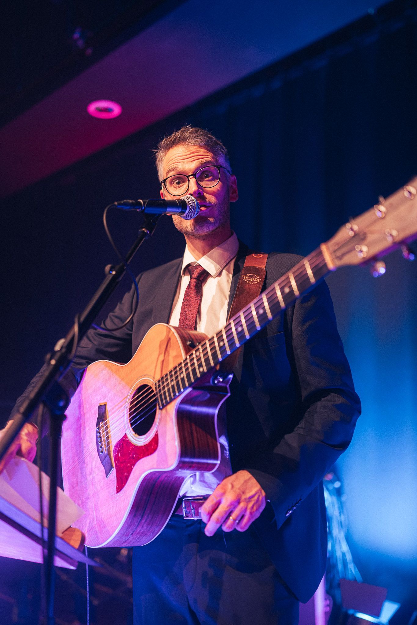 Gabriel ist dem Rest der Tanzspielerei um mindestens drei Dinge weit voraus: Grau meliertes Haupthaar, eine Promotion sub auspiciis praesidentis und einen Ring am Finger. Als verheirateter Mann (Sorry, Ladies!) kann er ein Lied von der Ehe singen, was er mit seiner Engelsstimme auch gerne und ausgiebig macht. Ganz allgemein ist die Tanzspielerei für Gabriel der perfekte Ausgleich zu seinem Brotberuf als Lehrer, kann er bei Tanzspielereien doch Dinge tun, die im schulischen Alltag eher nicht so gerne gesehen sind: Hälse würgen (der Gitarren), Ständer umklammern (Mikroständer), Publikum einheizen (Publikum im Dativ!). Tja, non scholae sed vitae...